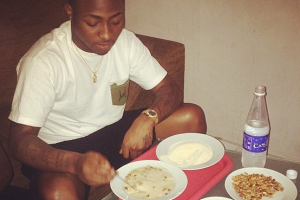 Check Out Davido Helping Himself With Garri and Groundnut + Other rich Nigerian